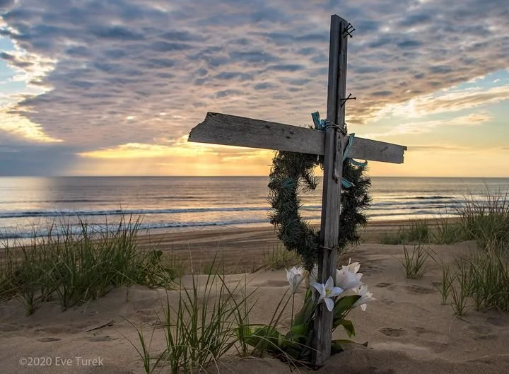 This photograph is from a previous Easter Sunday morning during lockdown. Before daybreak, I went to the ocean and found the empty Cross waiting at the access road. I felt led to go to it.